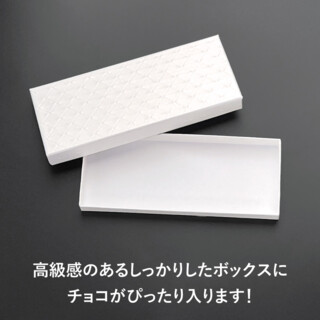 DECOチョコが10個ちょうど入るサイズで 特別なプレゼントにぴったり! パールのような光沢のある、 やさしい白色のギフトボックスです。 華やかで高級感があるので、 チョコを詰めるだけで素敵なギフトが完成します。 箱全体のサイズ:約164×66×17mm ============================== ※チョコは別売りです。 ※お箱詰めは行っておりません。 商品到着後、お客様ご自身でのアレンジ作業をお願いいたします。 ==============================